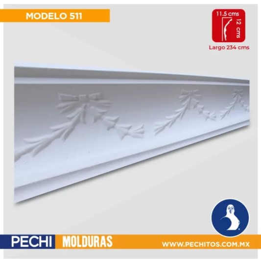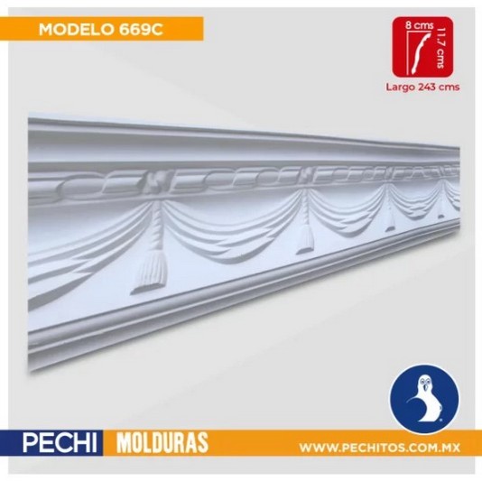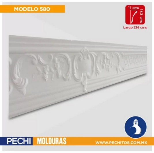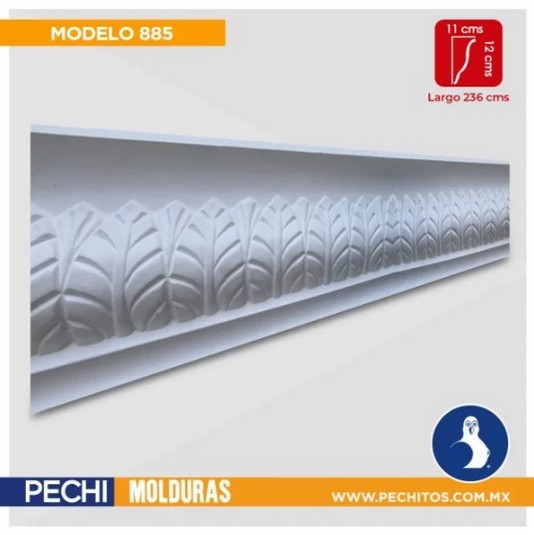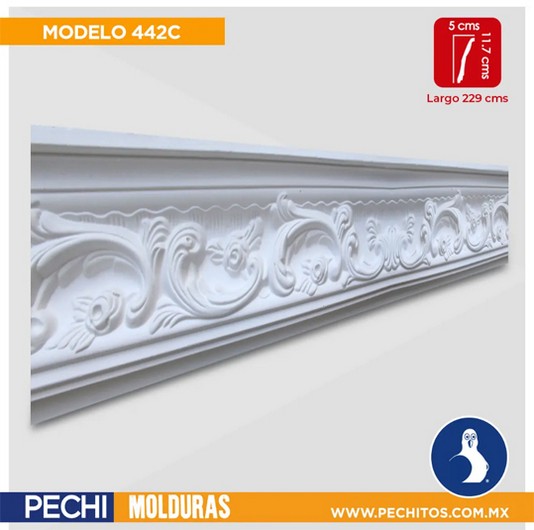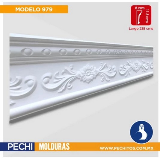 - En interiores: molduras de techo, molduras de pared, molduras de chimenea, molduras de ventanas y molduras de puertas.